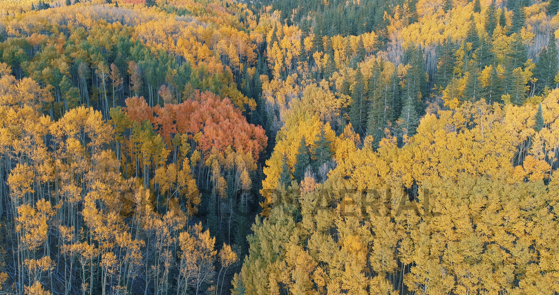 Vídeo de archivo de los colores del otoño en los bosques de álamos de la montaña Santa Fe, cerca de Santa Fe, Nuevo México. Imágenes aéreas en 4K tomadas con un dron, de 10 segundos de duración. La marca de agua se elimina después de la compra.